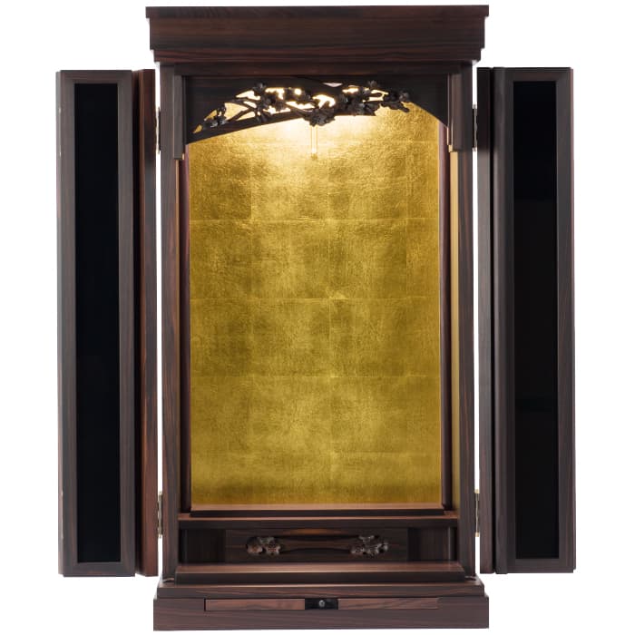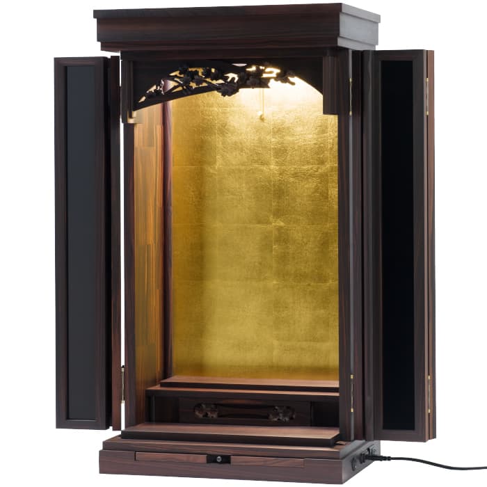 コンパクトでありながら、お仏壇内部を明るく照らす照明はLED。長期にわたり、明るく照らします。